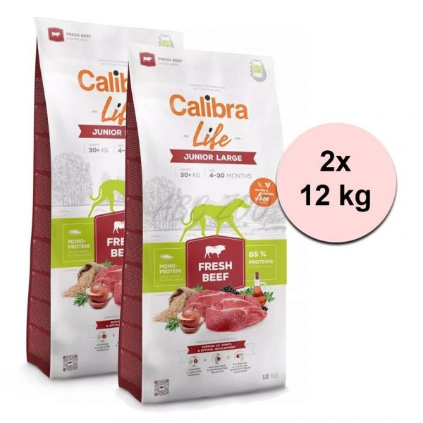 Calibra Dog Life Junior Large Fresh Beef 2 x 12 kg