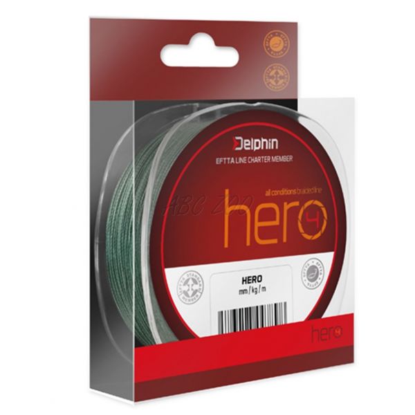 4 szálas fonott zsinór monofil zsinór áráért. Delphin HERO egy megbízható 4 PE mikroszálból font zsinór. A szálak szisztematikus szövésével kitűnő teherbírást és minimális nyúlást értünk el. A finom kapást is rögtön átadja a csaliról a horgászbotra, ami lehetővé teszi a gyorsabb reakcióidőt mint a monofil zsinóroknál. A zsinór utólagosan felületkezelt, ami biztosítja a minimális nedvszívóságot. A méretek széles skálájának köszönhetően a Delphin HERO több horgásztechnikánál is felhasználható!