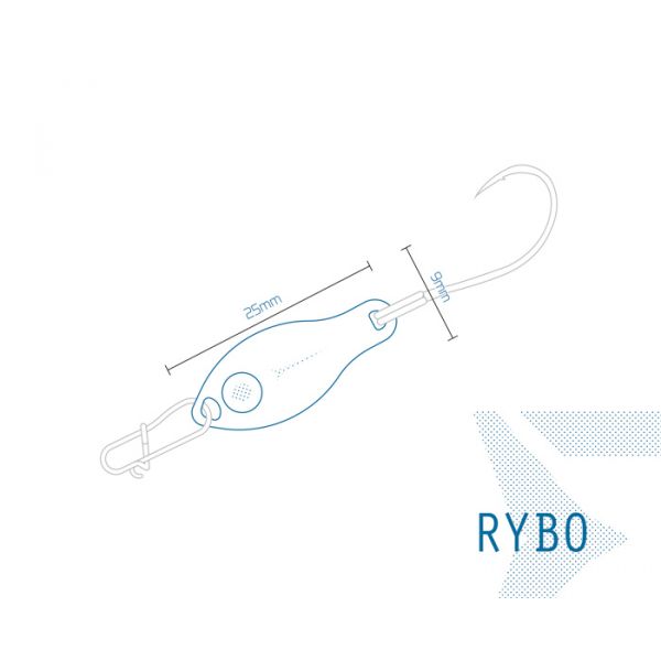 A Delphin RYBO villantó termékcsalád ideális műcsali a pisztrángos (Trout Area) horgászterületein. Testük cink ötvözetből készül. Minőségi BOMB! egyeshoroggal vannak felszerelve HardLure szakállal és FASTLOCK MICRO SNAP karabínerrel, hogy nehogy elveszítse fogását. A pisztrángon kívül nem vetik meg a tavakban vagy patakokban még kisebb ragadozó halak sem. Az a tény, hogy nagyon csábítóak a ragadozók számára, már az első pillantásra látható. A RYBO villantóknak kishal formájuk van nagy műszemmel, amely tökéletesen utánozza az élő csalit.