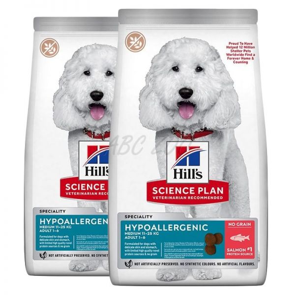 A Hill's Science Plan Hypoallergenic Medium száraz kutyaeledel lazaccal felnőtt közepes testű kutyáknak ízletes szárazeledel 1–6 éves, felnőtt, közepes testű kutyák számára. Kíméletes receptúra, amelyet korlátozott mennyiségű, kiváló minőségű újfajta fehérjeforrásokkal és gabona nélkül állítottunk össze – ízletes hipoallergén száraz kutyatáp az érzékeny kutyák igényeire szabva.
