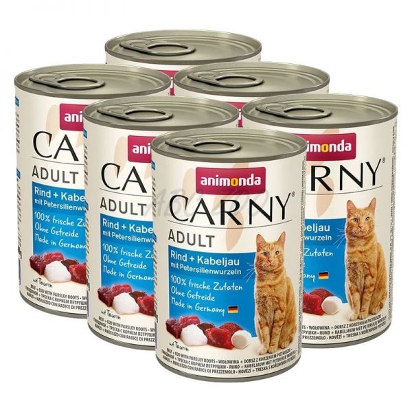 CARNY ADULT konzerv marha, tőkehal és petrezselyem 6 x 400 g