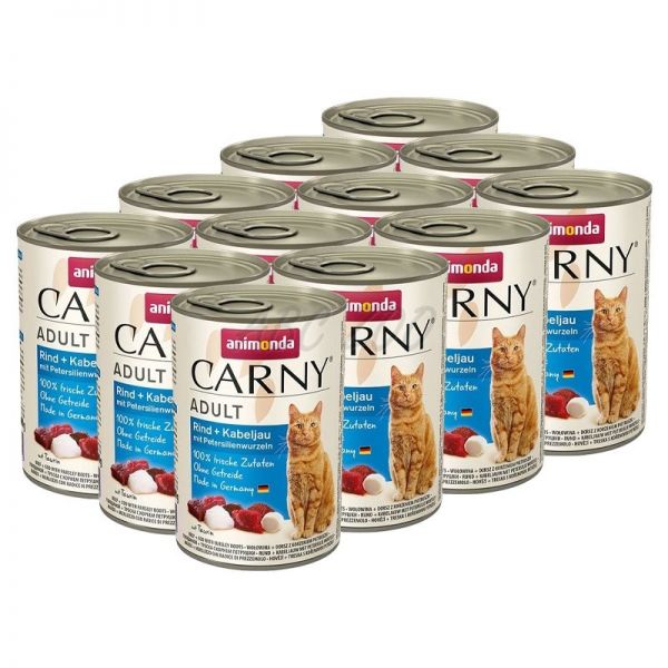 CARNY ADULT konzerv marha, tőkehal és petrezselyem 12 x 400 g