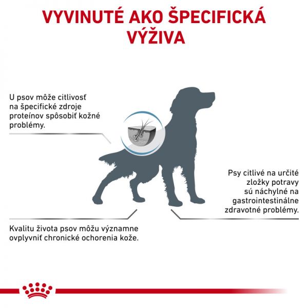 A táplálékintolerancia gyakran a kutyák emésztőrendszerében és bőrében jelentkezik. Ezek a szervek a legérzékenyebbek közé tartoznak. A túlreagáló immunrendszerrel és eliminációs diétával rendelkező kutyák esetében az állatorvosi diéta segít a gyulladásos bélbetegségek és az atópiás dermatitisz kezelésében is.A speciális gyártási folyamatnak köszönhetően elkerülhető az élelmiszer-allergénekkel való szennyeződés.