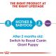 A ROYAL CANIN Mother & Babydog Giant tápot nagytestű kutyák számára fejlesztették ki, akiknek a súlya felnőttkorban meghaladja a 45 kg-ot. Különösen a vemhes és szoptató szukák, valamint a 2 hónapos korig elválasztott kiskutyák számára készült.