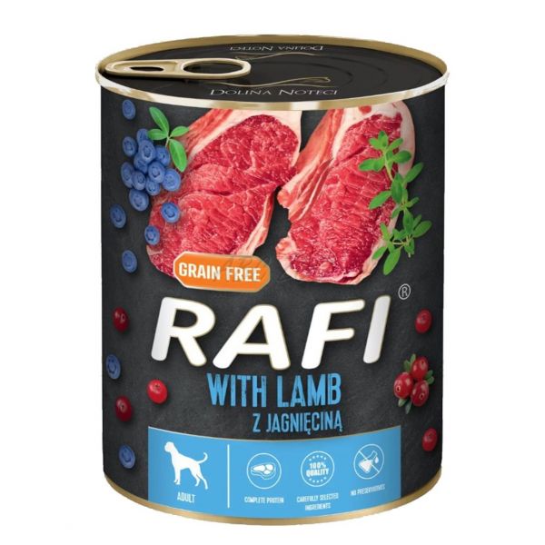 összetevők: hús és állati termékek 65% (bárány 4%), gyümölcsök (áfonya 2%, áfonya 2%), ásványi anyagok, olajok és zsírok (lenmagolaj 0,2%), szárított kakukkfű 0,01%