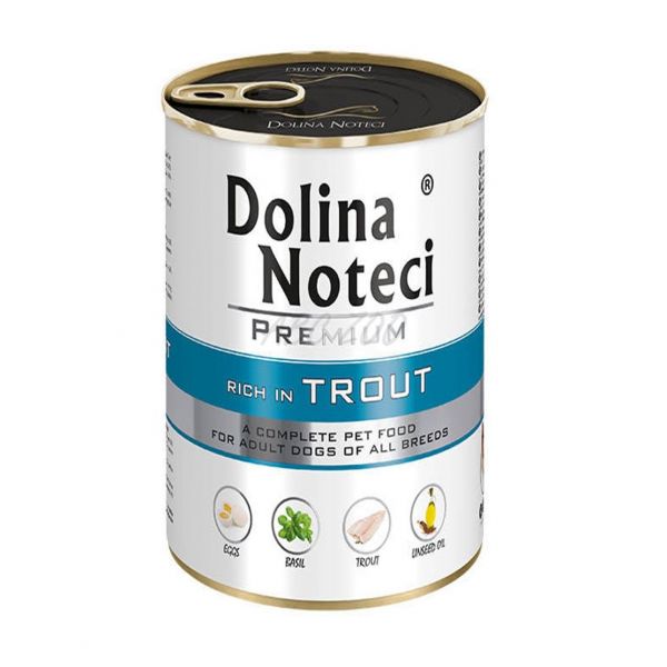összetevők: marhahús 30% (hús, tüdő, szív, gyomor, tőgy), pisztráng 25%, sertéshús 20% (hús, máj, vese, nyelőcső), húsleves, tojás 3%, ásványi anyagok, lenmagolaj 0,2%, psyllium 0,2%, szárított bazsalikom 0,01%.