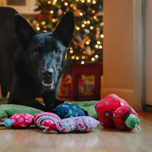 Mókás plüssjáték kutyáknak karácsonyfadísz alakban. Bővebb leírás