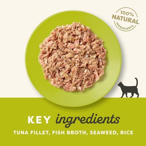 Összetevők: Tonhal filé 70%, hallev, tengeri hínár 5%, rizs