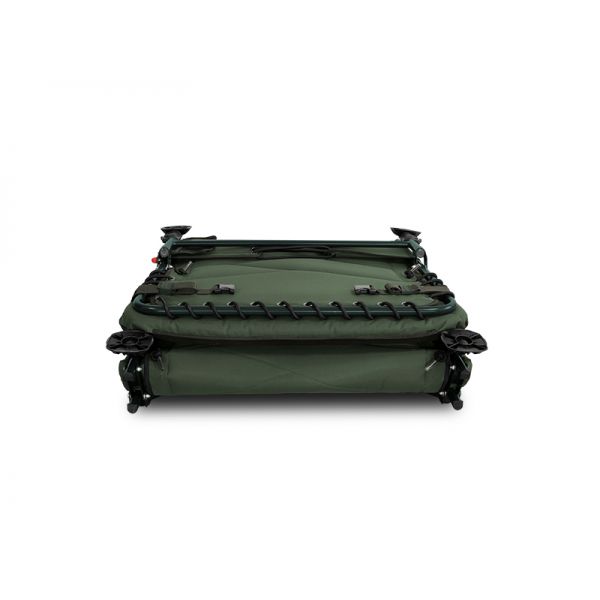 Kényelmes nyolclábú ágy, amely minőségi pihenést biztosít a vízparton. Az ágy alapja egy stabil és könnyű szerkezet, ami ráadásul remekül ellenáll a mechanikai sérüléseknek. A vázat alaposan párnázott, steppelt matrac borítja, melynek gyapjú felülete meleg és puha tapintású. Ezenkívül egy tartós 600D szövet borítja C2G dizájnnal az oldalán. A fejtámla zöld színű, extra gyapjú párnázással rendelkezik a még nagyobb kényelem érdekében. A középső rész alulról megerősített, és a matrac keménysége gumipánttal állítható. Mind a 8 láb robusztus sártalppal van felszerelve, amelyek a különböző terepviszonyoknak megfelelően állíthatók. A fejrész alatti lábpár egy biztonsági mechanizmussal rendelkezik, amely könnyedén kihajtja az ágyat, és megakadályozza annak összecsukódását vagy elmozdulását. Az ágy két hevederrel rendelkezik, valamint az oldalán nagy csatokkal, így összecsukva sem nyílik ki magától, ezért sokkal könnyebb a szállítása. Ehhez a termékhez tartozik egy praktikus kis zseb, amelyben telefonját, vevőkészülékét vagy egyéb kisebb tárgyat tárolhat. Mindezek a tulajdonságok, a kényelmes párnázás és az egyedi kialakítás az EightLUX 8 ágyat kategóriájának TOP ágyai közé emeli.