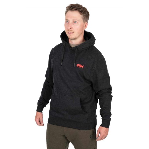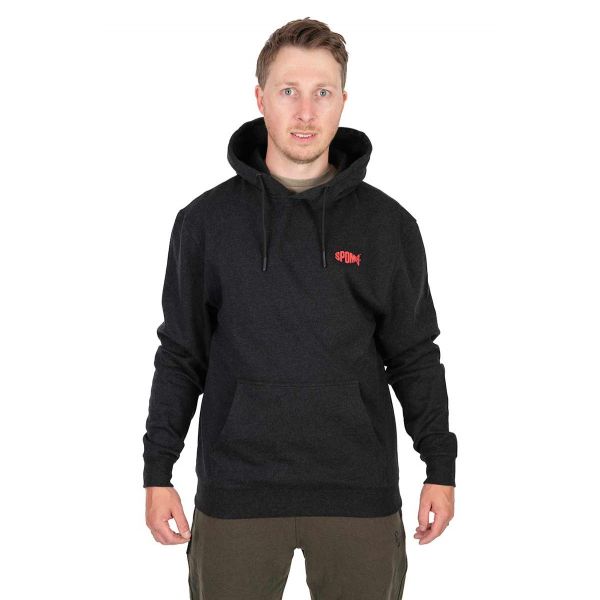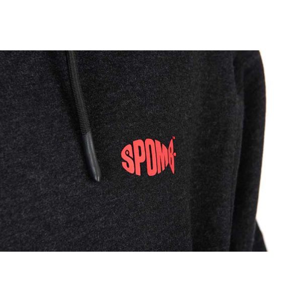 Fekete kapucnis pulóver piros Spomb logónyomással, kenguru zsebbel, mandzsettával az ujjakon és a derékrészen. Összetétel 80% pamut, 20% poliészter. S-től 3XL méretig kapható. Bővebb leírás