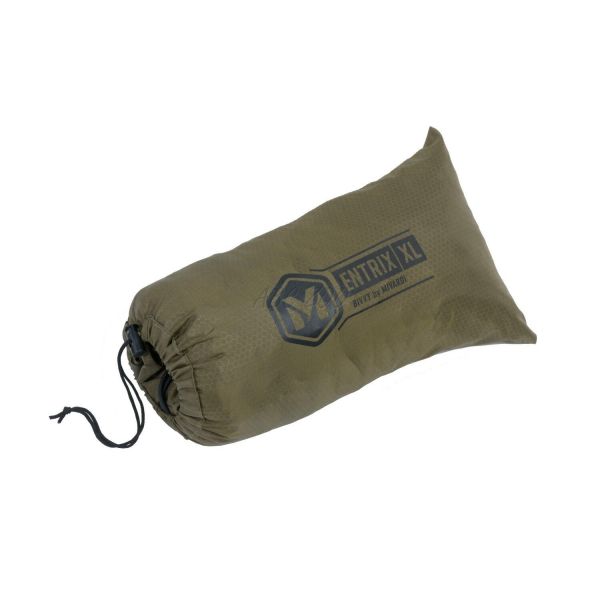 Kompakt Entrix XL bivvy fedél miniatűr szállítási méretekkel. Bővebb leírás