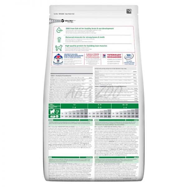 Csirkés receptúrájú száraz eledel kölyökkutyáknak, amely a megfelelően kiegyensúlyozott összetevőkkel és ásványi anyagokkal támogatja az agy és a szemek fejlődését. Halolajból származó DHA-t, valamint a sovány izmok növekedését elősegítő minőségi fehérjét tartalmaz.