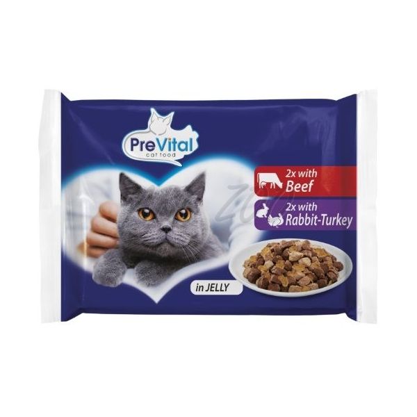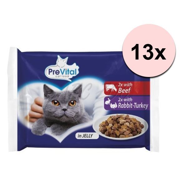 PreVital Cat marhahús/nyúl-pulyka zselében 52 x 100 g