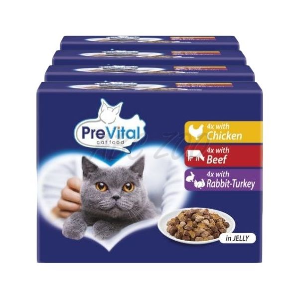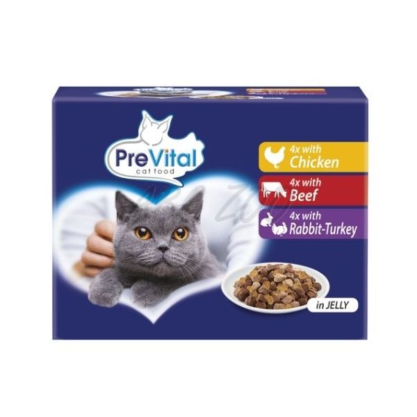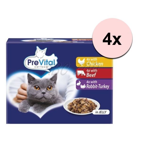 PreVital Cat csirke/marha/nyúl-pulyka zselé 48 x 100 g