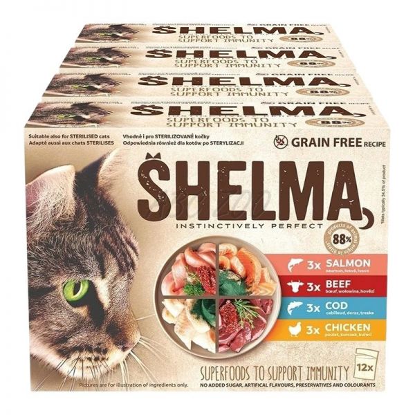 Shelma Cat hús és hal zseb mártásban 48 x 85 g