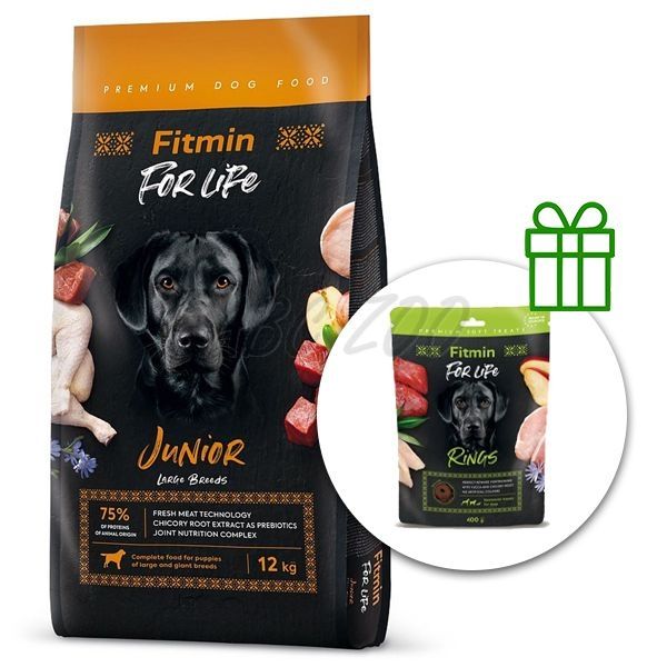 Fitmin FOR LIFE Junior Large Breed 12 kg + Fitmin For Life Rings GRÁTISZ