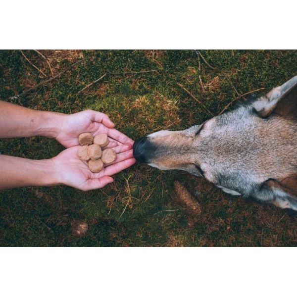 Táplálási útmutató: A liofilizált jutalomfalat jutalomfalatként vagy száraz vagy nedves eledel tetejére szolgál, és nem helyettesítheti a teljes értékű és kiegyensúlyozott étrendet. Kutyája egészséges étrendjének részeként tálaljuk. Kérjük, vegye figyelembe, hogy 100 g fagyasztva szárított termék tápértéke 300 g friss nyers húsnak felel meg. Hűvös, száraz helyen tárolja. Mindig biztosítson kutyatársának elegendő friss ivóvizet. Tárolja hűvös, száraz helyen, és védje a közvetlen napfénytől. Felbontás után zárja vissza. A minőségmegőrzési idő, a tételkód és a gyártó nyilvántartási száma a csomagolás hátoldalán található.