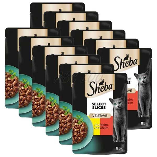 Sheba Select Slices Csirkehúsos és marhahúsos tasak szószban 12 x 85 g