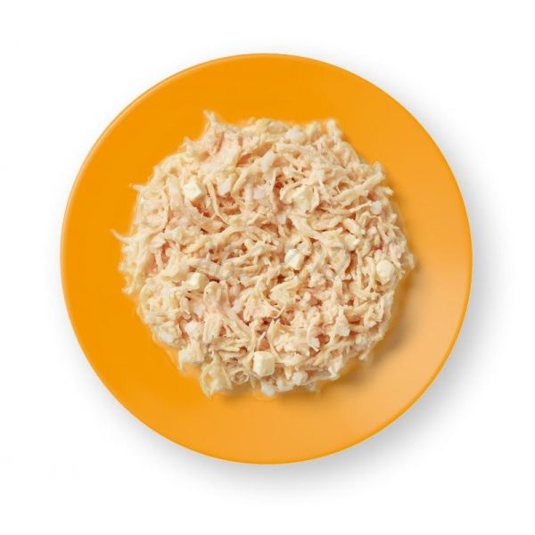 Ez a nedves macskaeledel ízletes és tápláló alternatívát kínál macskája napi étrendjéhez. 100%-ban természetes összetevőket tartalmaz, gabonamentes, tartósítószerek és mesterséges adalékanyagok nélkül, így érzékeny emésztésű macskák számára is ideális. A gyengéd csirkehús és sajt kiváló fehérje-, kalcium- és esszenciális tápanyagforrás. A termék taurinnal gazdagított, amely támogatja az egészséges szívműködést és jó látást. Az ízletes leves hidratációt biztosít, és még a válogatós macskáknak is vonzóvá teszi az eledelt.