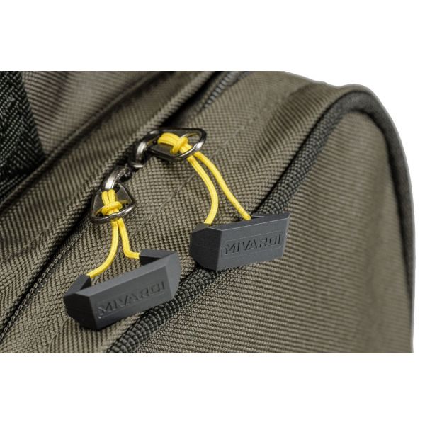 Az alja extra megerősített és megerősített. A főrekesz és az összes zseb súlyozott cipzárral van ellátva, amelyhez egy pár ergonomikusan kialakított Mivardi húzópár tartozik a nagyon könnyű hozzáférés érdekében.