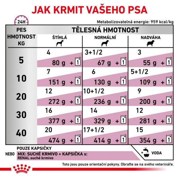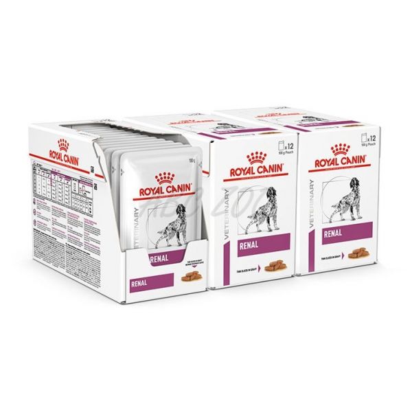 ROYAL CANIN® RENAL, vékony szeletekben, mártásban, teljes értékű diétás eledel kutyák számára, amely alacsonyabb foszfortartalmának, valamint kiváló minőségű fehérjéinek köszönhetően támogatja a veseműködést krónikus veseelégtelenség esetén.AJÁNLÁS: Javasoljuk, hogy az adagolás megkezdése vagy meghosszabbítása előtt konzultáljon állatorvosával.krónikus veseelégtelenség esetén a RENAL-t az első fázisban 6 hónapon keresztül adjukA Dog Renal termékcsaládot vesebeteg kutyáknak szánjuk.