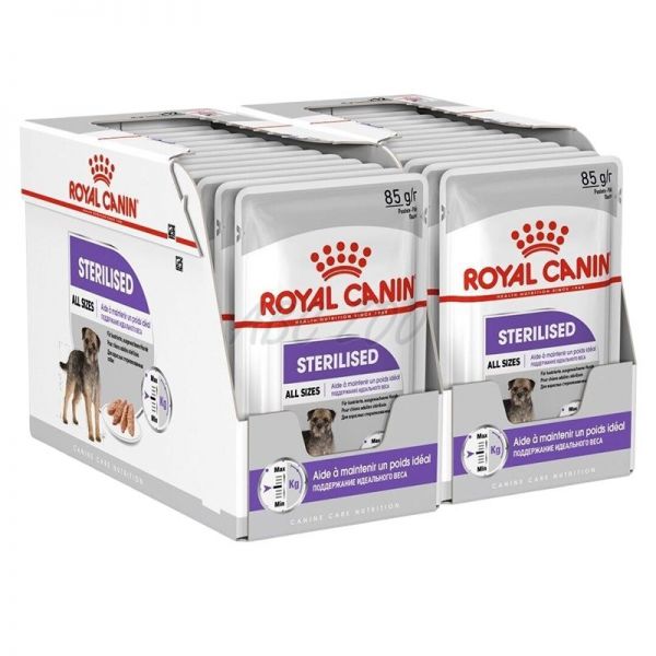 Az ivartalanítást követően a kutyák anyagcseréje gyakran lelassul és úgy tűnhet, hogy kutyája jobban szeret a kanapén pihenni, mint a szabadban futkározni és alig várja az etetési időt. Köztudott, hogy a kiegyensúlyozott étrend segít az állatoknak leküzdeni az egészségügyi problémákat. Ez a termék hosszú évek kutatómunkájának köszönhetően jött létre, melyet az ön kutyájához hasonlóan ivartalanított kutyák táplálkozásával kapcsolatban végeztek. A ROYAL CANIN® Sterilised alutasakos pástétom megfelelő valamennyi kutya számára súlyuktól függetlenül és speciális aktív tápanyagokat tartalmaz, így csillapítja a kutya éhségét és megfelelő általános állapotban tartja kutyáját. Az ízletes alutasakos pástétom könnyen emészthető fehérjékben gazdag, melyet az ön kutyájának igényeihez igazítottunk. A termékben található fehérjének köszönhetően a kutya megtartja izomtömegét, miközben a zsír-és kalóriabevitel csökken. Ezen kívül az alutasakos pástétom közepes mennyiségű zsírt tartalmaz és rostok optimális kombinációját, így az eledel jóllakottság érzetet kelt, miközben kutyája megtartja ideális testsúlyát.