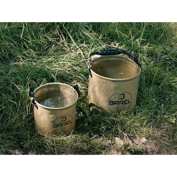 A Delphin BAREL egy vízálló EVA anyagból készült hasznos eszköz, amely rugalmas és hajlítható, így a vödröt nagyon minimális méretűre tudja hajtogatni. Elsősorban a halak itatására szolgál a szőnyegen közvetlenül a megverés után és a fotózás alatt, de használható kis víztartályként is különböző célokra, például ételek keverésére vagy kézmosásra, valamint bármilyen más vödörként is, ahol felszereléseket, csalikat és hasonlókat tárolhatunk. A BAREL vödör egy stabil fekete, kötéllel ellátott fogantyúval van ellátva, amellyel a parttól nagyobb távolságból vagy egy nehezebben megközelíthető partról vagy csónakból is lehet vizet kanalazni.Technikai paraméterek:5l20x17cmSzállítási méret: 20x8cmKötél hossza: 5m10l25x22cmSzállítási méret: 25x10cmKötél hossza: 7m