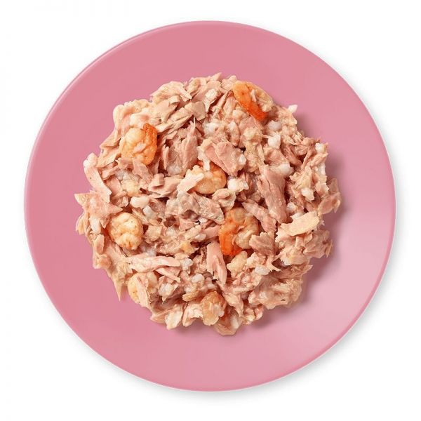 összetevők: Tonhalfilé 55%, halászlé, garnélarák 20%, rizs
