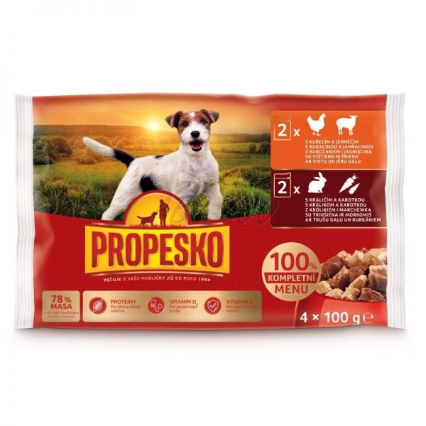 Propesko Dog Alutasak nyúl-répa/csirke-bárány szószban 4 x 100 g