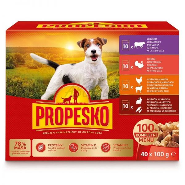 Propesko Dog Alutasak marha/pulyka/csirke-bárány/nyúl-répa szószban 40 x 100 g