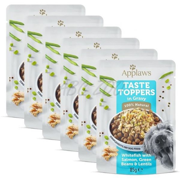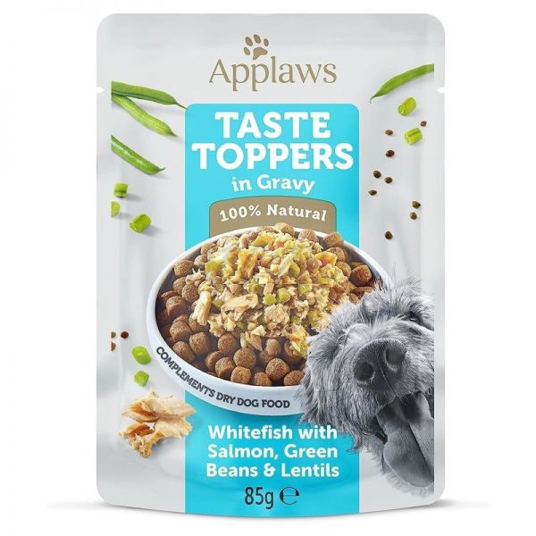 Applaws Dog Taste Toppers mártásban fehér hal, lazac, bab és lencse 6 x 85 g