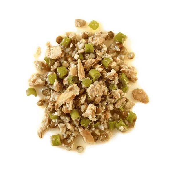 összetevők: Fehérhal 26%, lazac 14%, zöldbab 14%, lencse 10%, növényi zselésítőszer