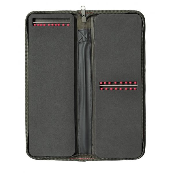 A Stiff Rig Wallet egy tartós és biztonságos cipzáras tok, amely előkötött előkék tárolására szolgál. Erős és strapabíró anyagból készült, amely taszítja a szennyeződéseket és a vizet, így védelmet nyújt és biztonságban tartja az előkéket.