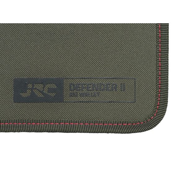 Annak érdekében, hogy az előkék rendezetten maradjanak a tokban, beépített rögzítő tűkkel rendelkezik, amelyek biztonságosan a helyükön tartják őket, különösen szállítás közben. A Rig Wallet cipzárral zárható és nyitható a további védelem érdekében, és zöld színben, JRC logóval kapható.