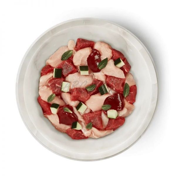 összetevők: Bárány szívizom hús (43%), csirke gyomor (16%), csirke izom hús (11%), csirkemáj (10%), csirke bőr (10%), cukkini (4%), paradicsompor, repceolaj, catnip*, ásványi anyagok.