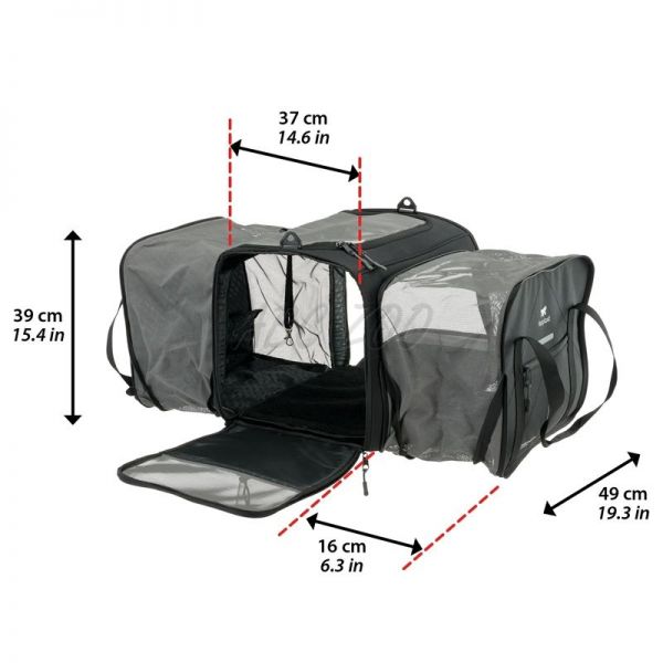 Ez a hordozó tartós 600 denier poliészterből készült PU bevonattal, amely karc- és vízállóságot biztosít. Innovatív kialakításának köszönhetően a rövid oldalak erős cipzárakkal teljesen kinyithatók, így gyorsan hozzáférhet kedvencéhez, míg a hosszú oldalak bővíthető funkcióval rendelkeznek, amely 16 hüvelyknyi plusz helyet biztosít a hosszabb utazások során a kényelem növelése érdekében. A nagyméretű hálós ablakok optimális szellőzést biztosítanak, így a belső tér jól szellőzik és kényelmes marad kedvence számára.