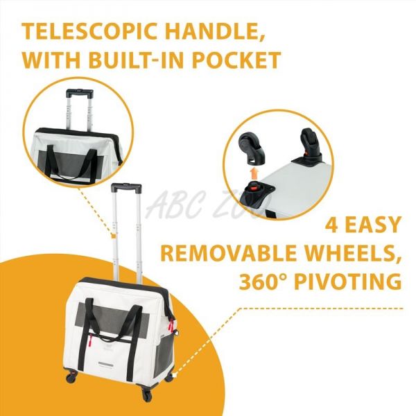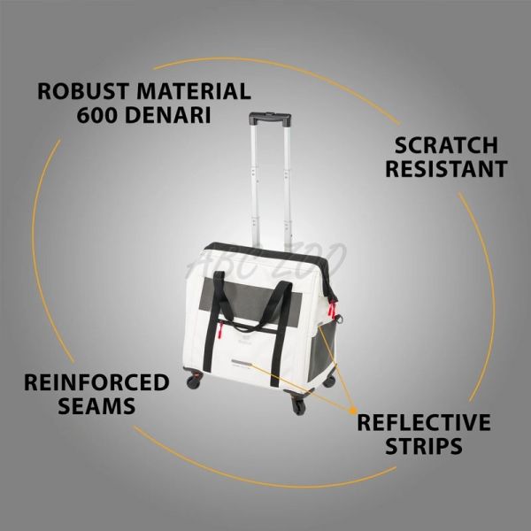 Ez a kocsi egyesíti a stílust és a funkcionalitást, így ideális megoldás az állattartók számára, akik kényelmes és biztonságos módot keresnek állataik szállítására. Kiváló minőségű poliészterből készült, modern és elegáns kialakítású, tartós és könnyen tisztítható. A kocsi teleszkópos fogantyúval és forgatható, levehető kerekekkel rendelkezik a könnyű kezelhetőség érdekében, míg a nagyméretű, hálós oldalablakok optimális szellőzést biztosítanak kedvence kényelme érdekében.