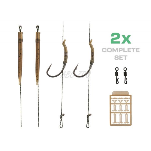 • Teflon bevonatú bojlis horgok szakállal • Rendkívül erős 25 lb előkezsinór, 20 cm hosszú • Line aligner – jobban akad a horog • Bojliütközők hosszabbítóval • Gubancgátló cső