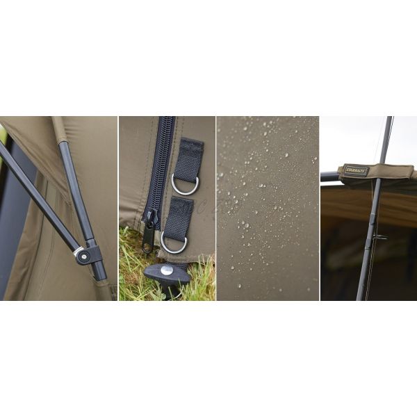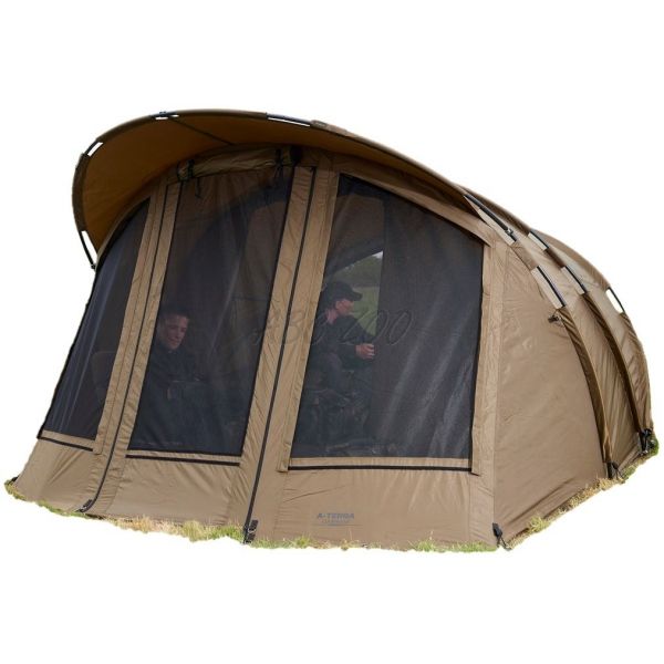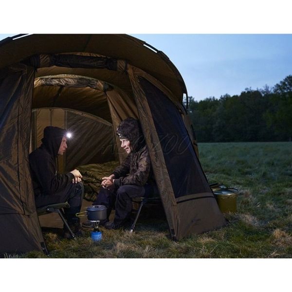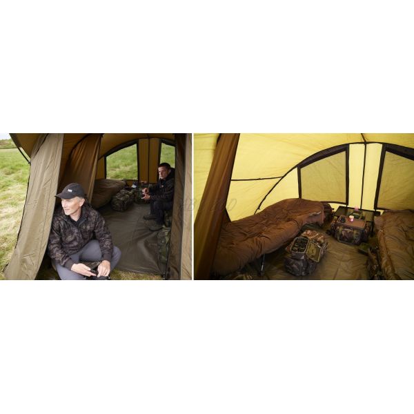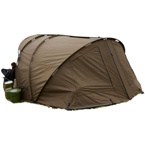Extra nagy sátor két horgász és két ágy számára, tágas előtérrel és nap- és esővédő napellenzővel. Hely bőséges felszerelés számára.