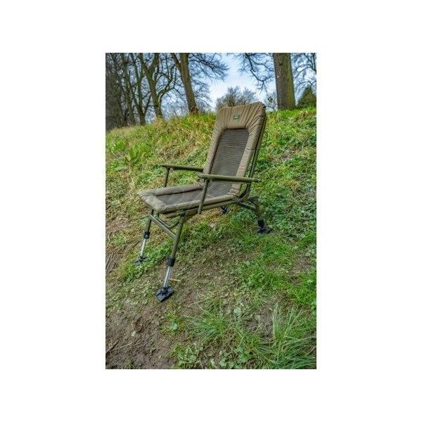 A Deluxe modell továbbfejlesztett, önszintező sártalpakkal és vastagon párnázott ülőfelülettel rendelkezik, amely prémium, mégis könnyű horgászkényelmet biztosít. A modell párnázott kartámaszokkal és hosszabbított első lábakkal van felszerelve, így ideális a meredekebb partokon történő használatra.