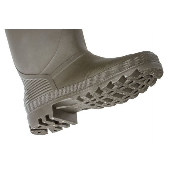 Prémium derékcsizmák kiváló minőségű PVC-ből, tartós poliészter béléssel — úgy tervezték, hogy a legnehezebb körülmények között is megállják a helyüket, és maximális élettartamot biztosítsanak. Az anyag puha, enyhén rugalmas és rendkívül kényelmes, így maximális mozgásszabadságot nyújt. A masszív csizmák csúszásgátló talppal és speciálisan kialakított sarokkal rendelkeznek, mély bordázattal az egyszerű és gyors levételhez. Minden varrás gondosan le van hegesztve, biztosítva a 100%-os vízállóságot.