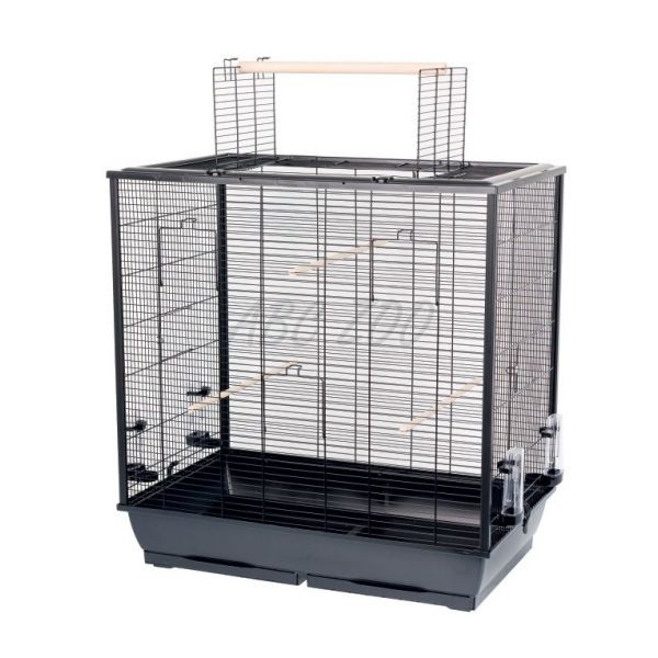 Madárkalitka kisebb madarak számára kiegészítőkkel és praktikus felső ajtóval a megnövelt élettér érdekében. Fekete színű tálca. Bővebb leírás