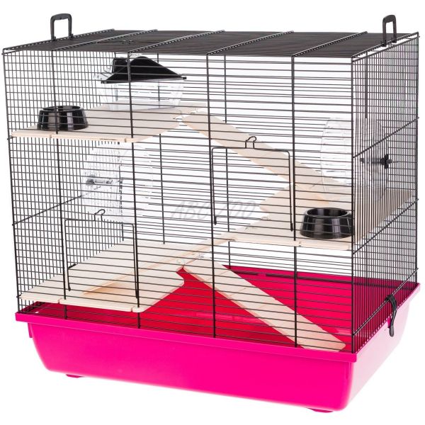 Ketrec kisebb rágcsálók számára, teljes felszereléssel. Rózsaszín színű tálca. Bővebb leírás