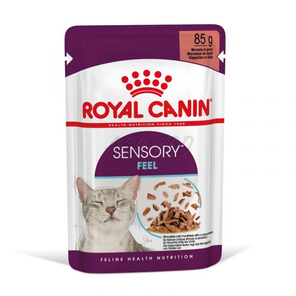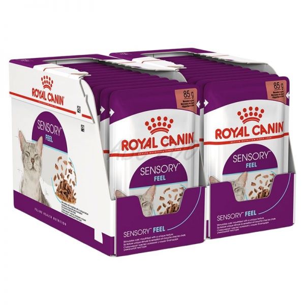 A macskák egyedi preferenciáinak kielégítése érdekében a Royal Canin® Sensory Feel kapható zselében lévő darabok formájában is, hogy optimális ízt és textúra változatosságot biztosítson. A Royal Canin® Sensory termékcsalád további tagjai közé tartozik a Sensory Taste és a Sensory Smell, amelyek mindegyike saját vonzó összetevőivel rendelkezik, amelyek serkentik macskája étvágyát, és érzékszervileg gazdag etetési élményt nyújtanak.