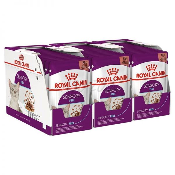 A macskák egyedi preferenciáinak kielégítése érdekében a Royal Canin® Sensory Feel kapható zselében lévő falatok formájában is, hogy optimális ízt és textúra változatosságot biztosítson. A Royal Canin® Sensory termékcsalád további tagjai közé tartozik a Sensory Taste és a Sensory Smell, amelyek mindegyike saját vonzó összetevőivel rendelkezik, amelyek serkentik macskája étvágyát és gazdag érzékszervi élményt nyújtanak az etetés során.