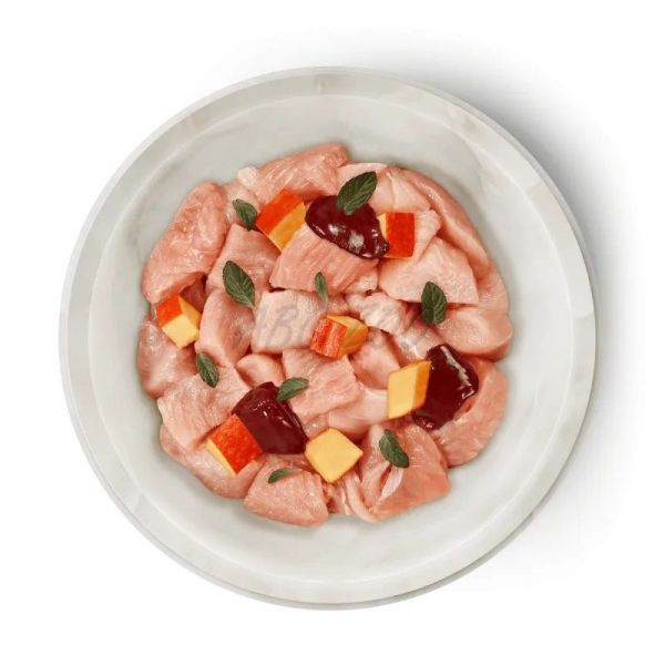 összetevők: Csirkeszív (20%), csirkehús (20%), pulyka izom (15%), pulykaszív (15%), csirkemáj (10%), csirkebőr (10%), sütőtök (4%), paradicsompor, repceolaj, catnip*, ásványi anyagok.