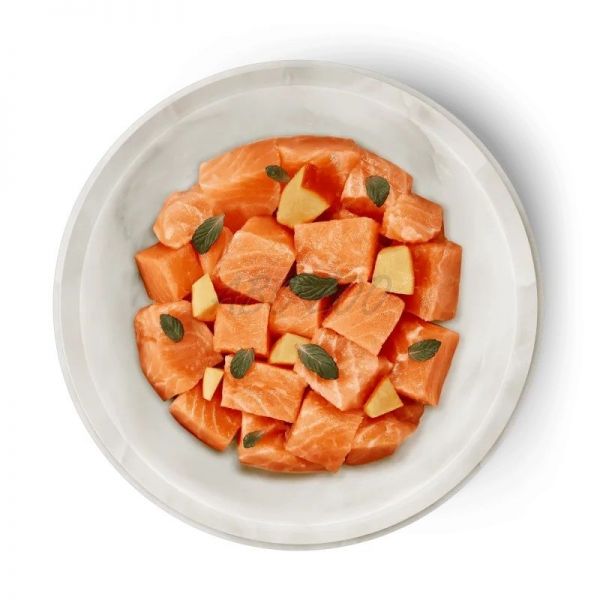 összetevők: Lazacfilé (90%), cukkini (4%), paradicsompor, macskamenta*.