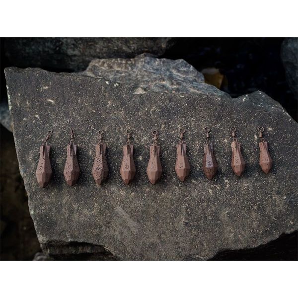 A súly felülete természetes barna árnyalatú, fekete pöttyökkel, ami tökéletesen álcázza a fenéken. A csigolyán található megnagyobbított fűzőlyuk lehetővé teszi a gyors és egyszerű rögzítést a szerelékhez.