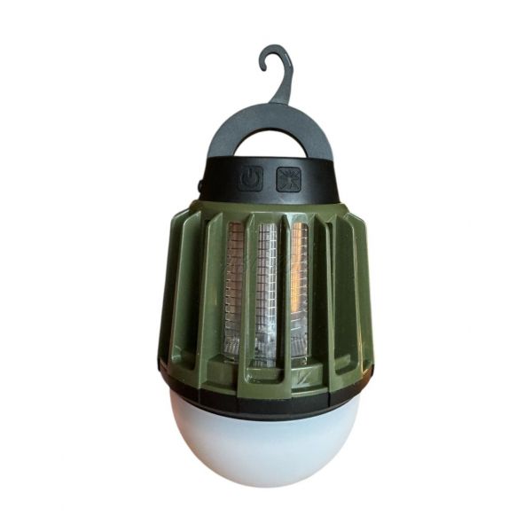 1. Két világítási mód• Normál világítás – A nagy teljesítményű LED fény elegendő fényt biztosít, ideális esti olvasáshoz, kempingezéshez vagy a tér megvilágításához.• UV fény a szúnyogok ellen – A speciális UV fény vonzza a szúnyogokat és más rovarokat, amelyeket a beépített elektromos rács azonnal megsemmisít.2. Beépített elektromos rovarirtó rácsHatékony rendszer a szúnyogok és más repülő rovarok eltávolítására, kémiák vagy spray-k használata nélkül.3. Helyezhető vagy akaszthatóA lámpa úgy van tervezve, hogy asztalra, padlóra helyezhető, vagy akasztható az Ön igényei szerint. Ideális használatra sátorban, teraszon vagy a természetben.4. Stílusos sötétzöld-fekete kivitelA modern dizájn harmonizál a kültéri és beltéri környezettel, diszkrét, de stílusos megjelenést biztosít.5. Beépített újratölthető akkumulátorA 2000mAh kapacitású lámpa hosszú üzemidőt kínál egyetlen töltéssel. Tökéletes társ hosszú estékre, kempingezéshez vagy kirándulásokhoz.6. Tartósság és könnyű karbantartásA lámpa kiváló minőségű anyagokból készült, időjárásálló, és könnyen tisztítható használat után.