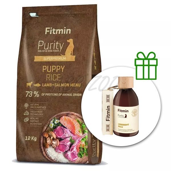 Fitmin Purity Puppy Rice Lamb & Salmon 12 kg + Fitmin Purity lazacolaj GRÁTISZ